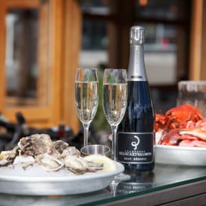 För ett glas champagne och skaldjur på däck eller trerätters i restaurangen.