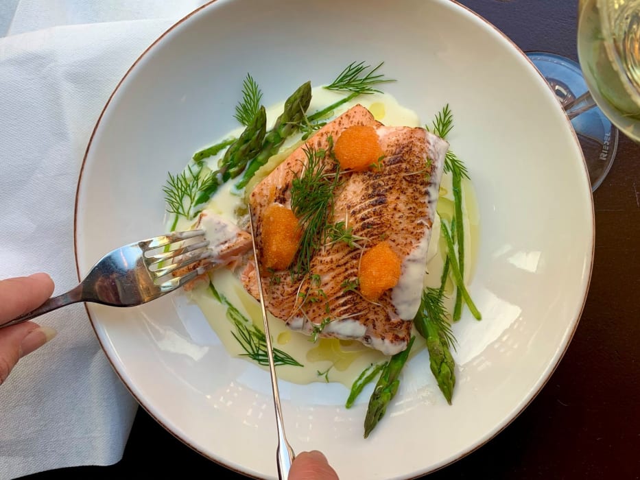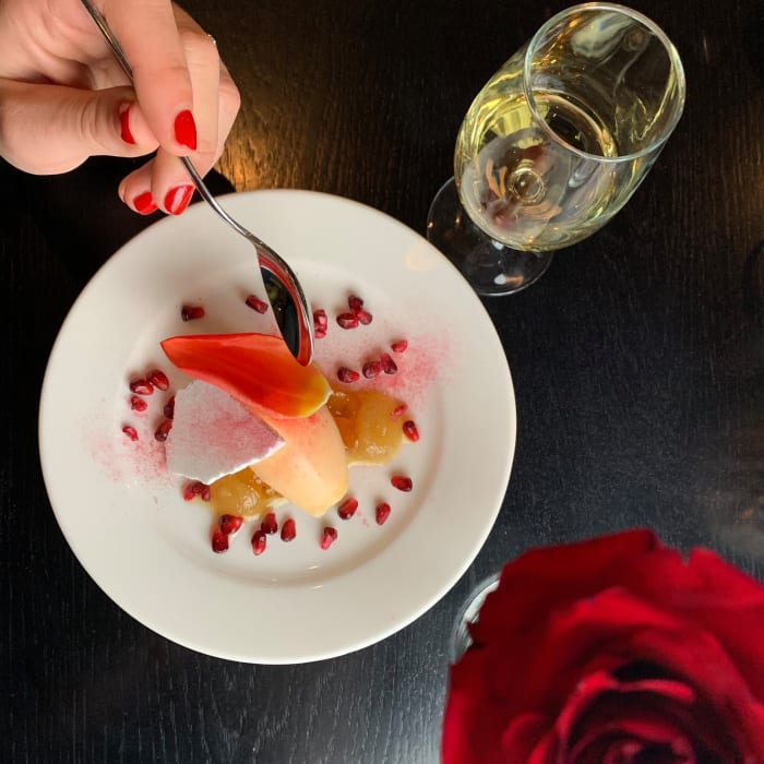 Kalixlöjromstoast, hjortcarpaccio, brasseriets högrevshamburgare.