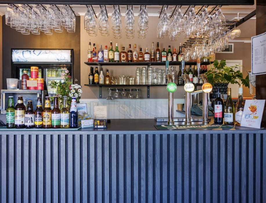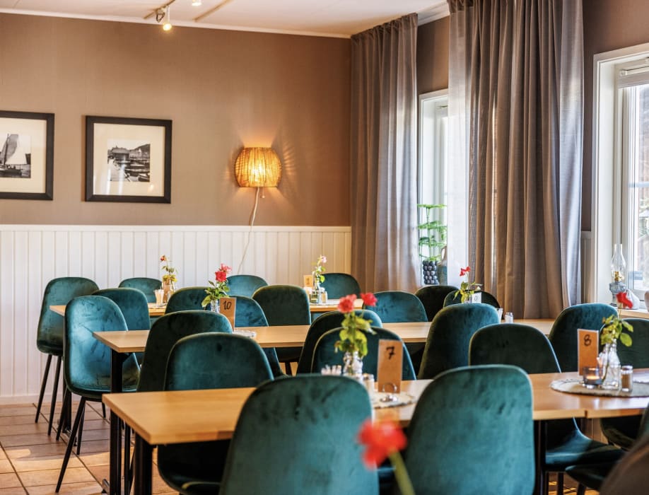 Precis vid infarten till GrebbestadFjorden ligger restaurangen som passar för både soliga sommardagar och mildare väder. Under sommarsäsongen är restaurangen öppen dagligen från morgon till kväll och serverar allt från glass och enklare rätter till en mättande bistromeny.