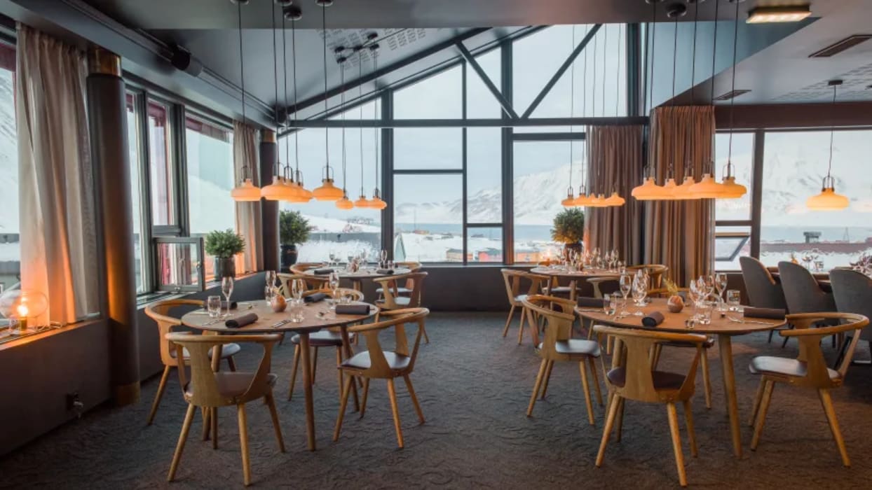 Med en slående utsikt över Longyearbyen njuter du av mat och dryck i världsklass på Funktionærmessen Restaurant. En gång i tiden var matsalen till för ett kolbolags tjänstemän, nu bjuds på smakkombinationer med intryck från hela världen. Restaurangen besöks flitigt av både lokalbor och turister.