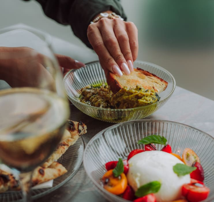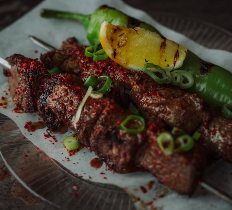 Snacks, pizza, spett och större rätter som kombineras med tillbehör.