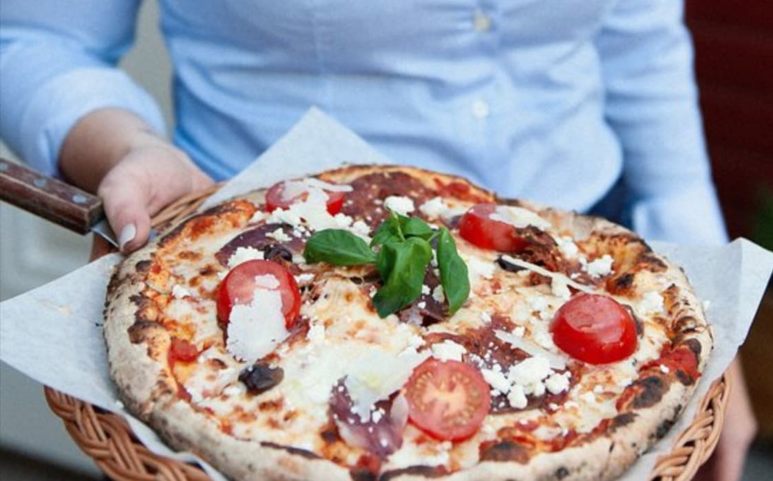 Vedugnseldad surdegspizza mitt i stadsparken i Lund.
