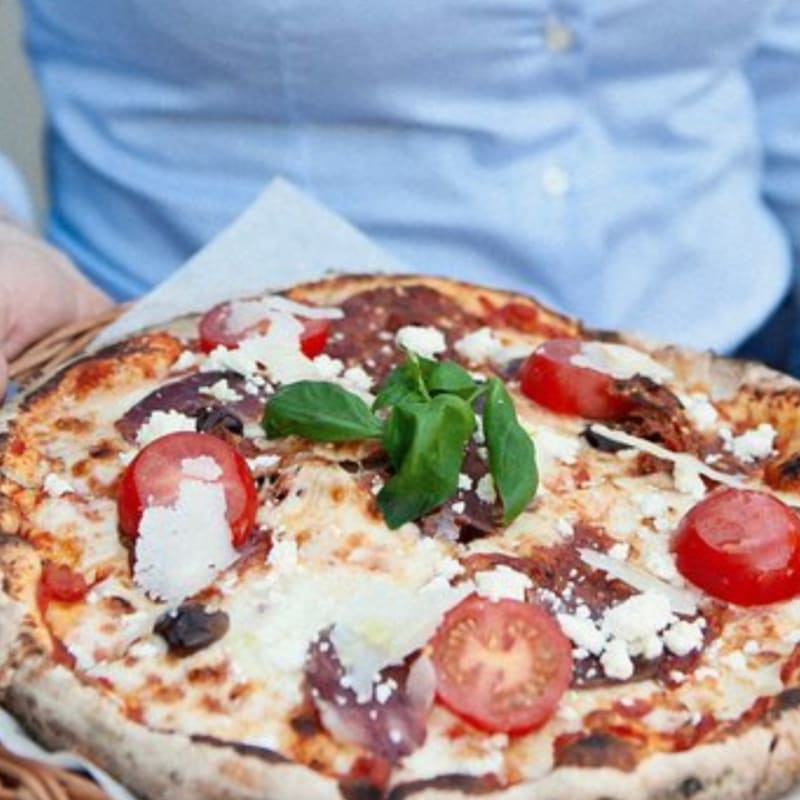 Vedugnseldad surdegspizza mitt i stadsparken i Lund.