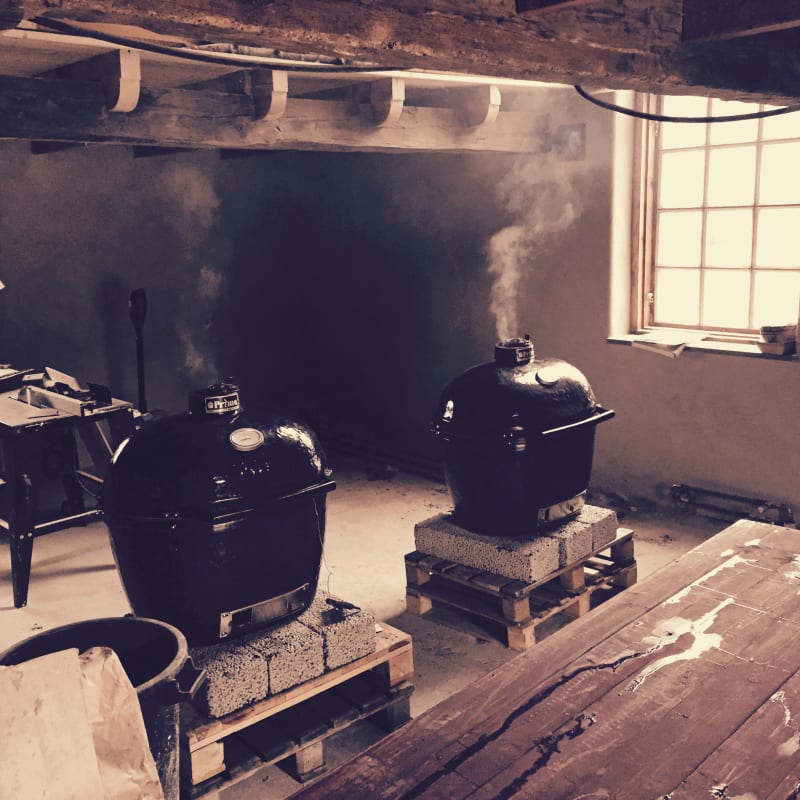 Mitt i ett gammalt magasin, en gång tillhörande Floda Järnbruk finns en vedeldade grill. Här lagas maten som serveras på Jernbruket. Kort- eller långgrill spelar ingen roll, råvarorna står alltid i centrum, köttet köps från lokala bönder ett djur i taget och grönsakerna odlar de antingen själva eller hittar så lokalt som möjligt. Ett grönt grillat alternativ finns alltid på menyn och i framtiden även fisk. Veckan på Jernbruket börjar på torsdagar 16.00 och slutar nån gång lördag natt. Vill ni besöka eller boka Jernbruket under andra dagar, så går det att lösa, hör av er.