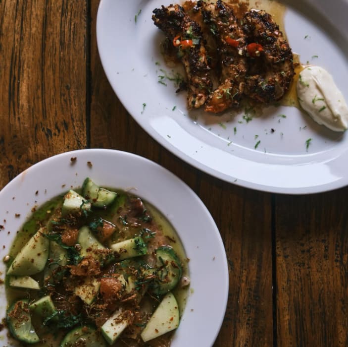 Livfull mötesplats med smaker från Mellanöstern, Sydamerika och Medelhavet.