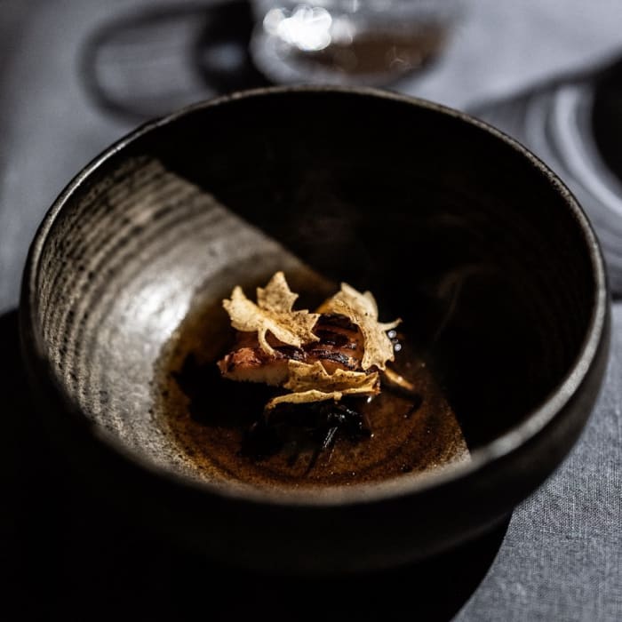 En kväll hos Knystaforsen är något helt unikt. Under 4 timmar serveras mat lagad över öppen eld på de färskaste råvaror de kan få tag på från den vilda naturen omkring: från åar, sjöar, skogar och lokala producenter.