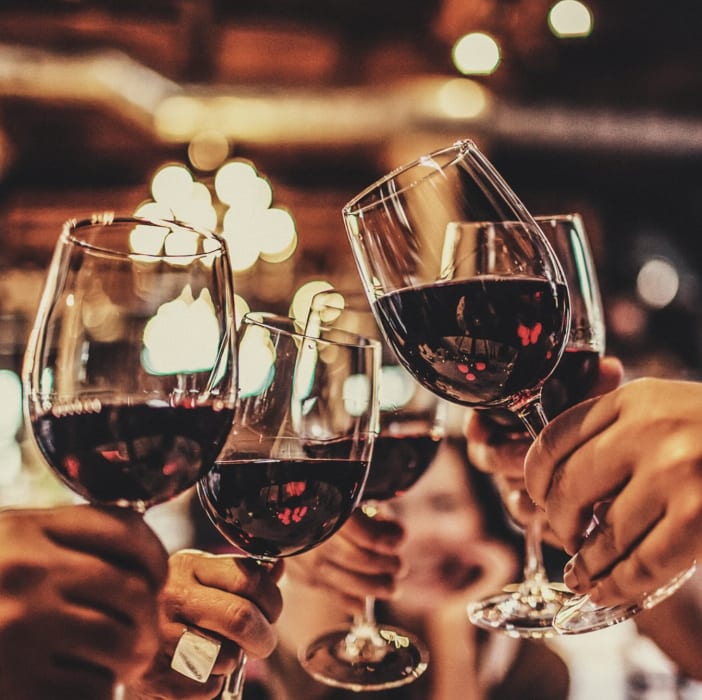Stort utbud av franska viner på glas.