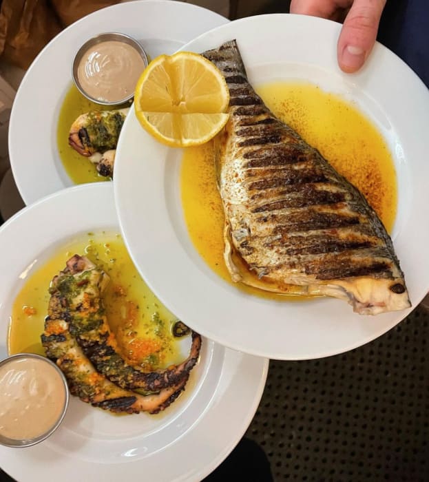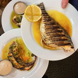 Fisk- och skaldjursrätter direkt från havet tills de tar slut.
