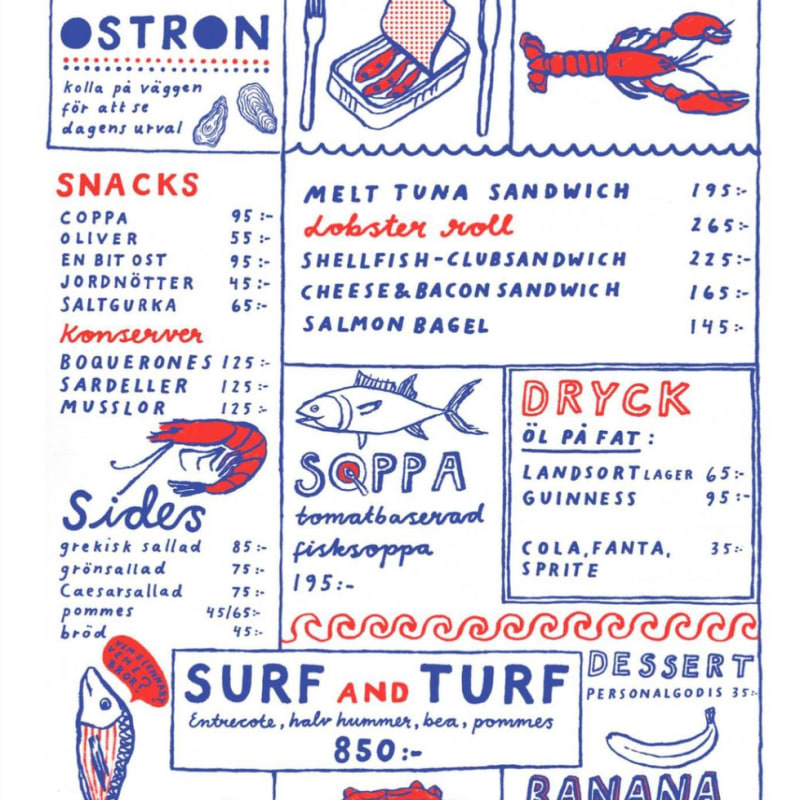 Etablerade kötthandlaren Lennart & Bror har blivit lika bra på fisk. På Tegnergatan 9 finns en välsorterad fiskdisk och några bord att slå sig ner vid för ostron, smör- och vitlökskokta skaldjur med pommes, melt tuna sandwich och annat smarrigt.