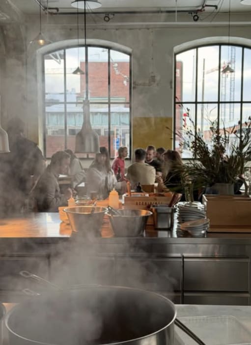 Matateljén är en ambitiös restaurang med fokus på säsongsbaserade råvaror och välbalanserade smaker. Köket rör sig mellan modern nordisk mat och kreativa influenser, med både fasta fyrarättersmenyer och à la carte. Den stora, industriella lokalen med öppet kök skapar en levande och social atmosfär.