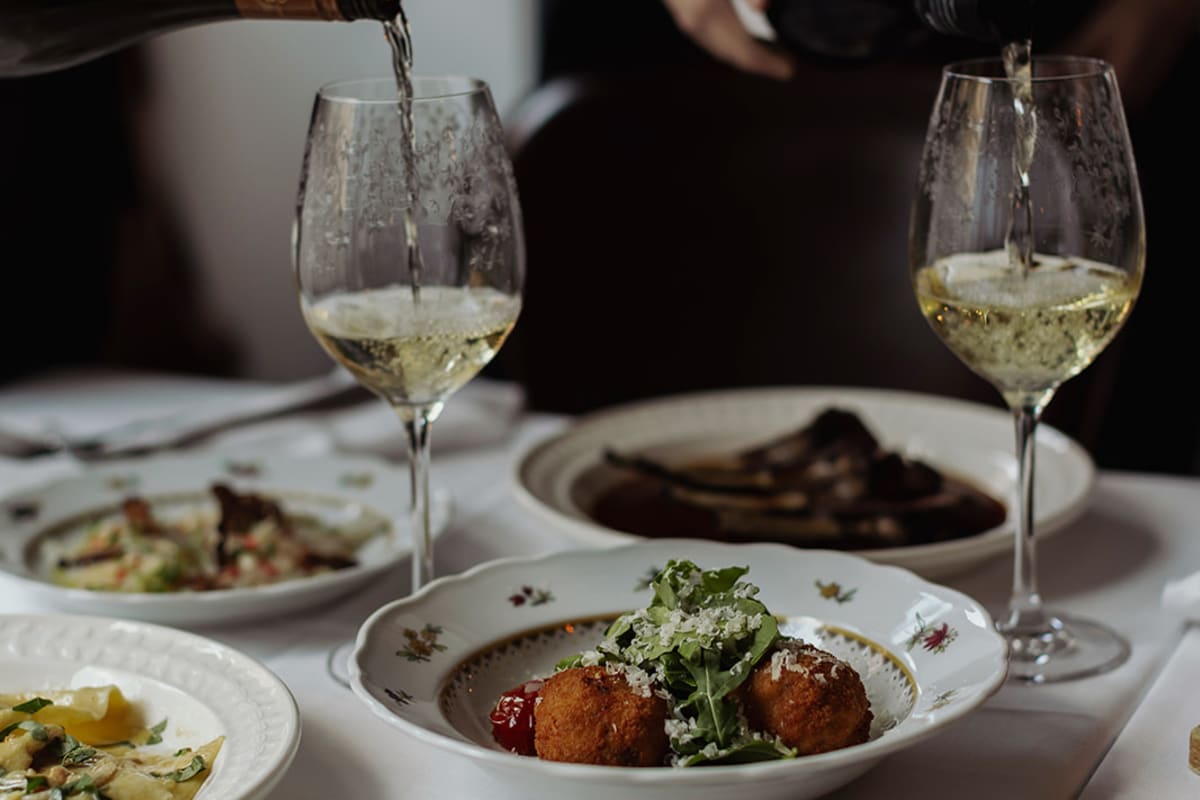 Vi erbjuder ett 20-tal viner på glas i vår bar och matsal