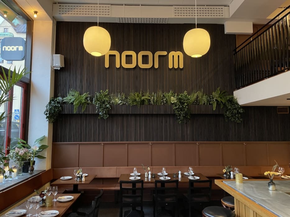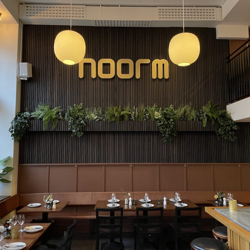 Noorm är en avslappnad kvarterskrog där de strävar efter att skapa en atmosfär där alla känner sig välkomna och bekväma (även hundar). Här serveras högkvalitativ mat och dryck till överkomliga priser. Välj mellan lunch- och kvällsmeny, barmeny och 150-lappen, och Chef´s Table. Baren är hjärtat, placerad mitt i matsalen. Här finns även en dold bar som heter BakomBaren – hittar du dit?