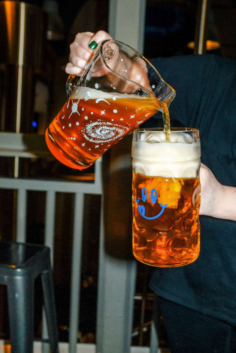 Öl och hamburgare i en gammal kyrka i Sundbyberg.