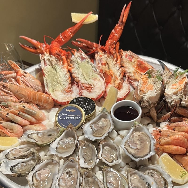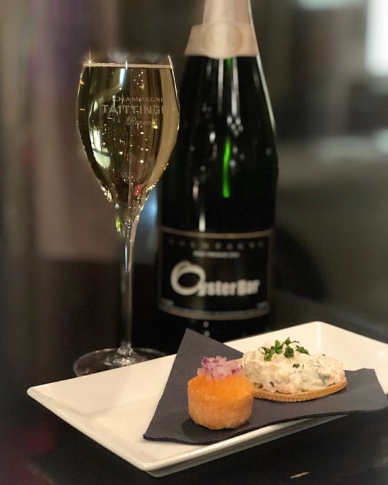 På Oyster Bar serveras skaldjur i alla former, förslagsvis med champagne. Den avslappnade stämningen blir en kontrast till de lyxiga råvarorna.