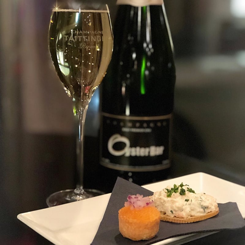 Skaldjursrestaurang med fokus på ostron och champagne.