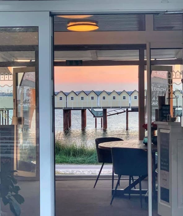 Mitt på strandpromenaden med öppet året runt.