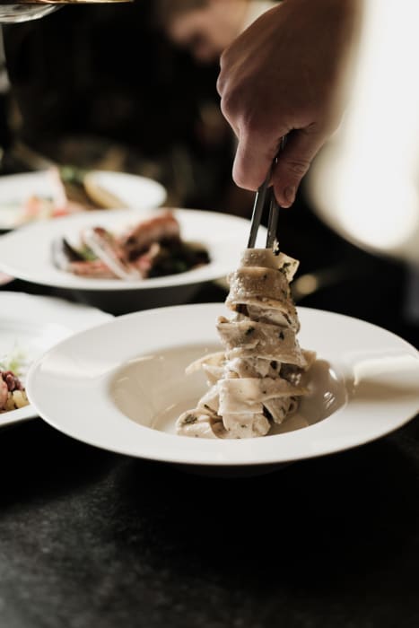 Grillad entrecôte, ångad torsk, köttbullar mm.