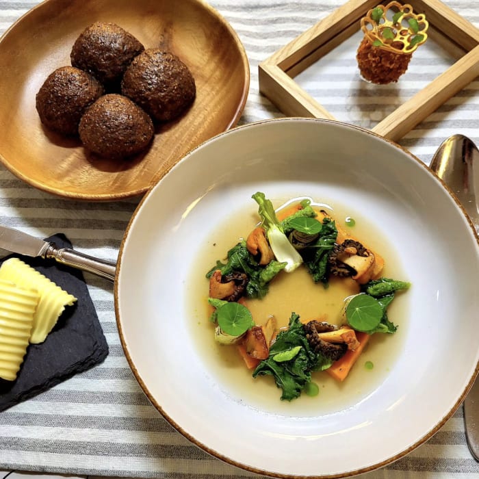 Hantverksmässigt tillagad mat med råvaror i säsong.