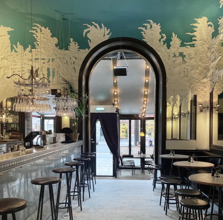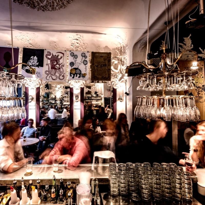 Riche bakficka och historiska bar med livemusik och DJs.