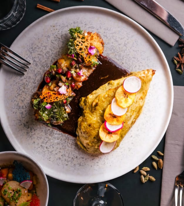 Indisk fine dining med nyskakade drinkar, färgstarka tallrikar och en smakrik upplevelse i en varm atmosfär. Kom förbi på afterwork, eller välj mellan avsmakningsmeny eller rätter ur den generösa à la carte-menyn.