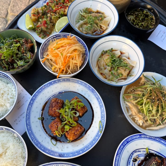 Surfig vibb och sichuanesiska smårätter att dela på.