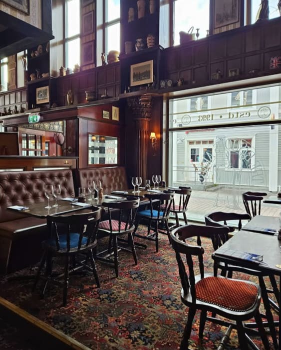 Gastropub med stort dryckesutbud och avslappnad stämning.