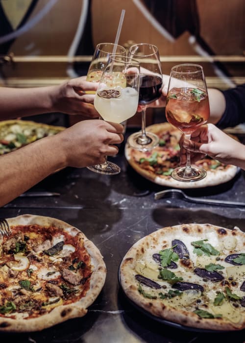Hos V-italiano Moderno möts italiensk tradition och modern känsla. Här serveras pizzor inspirerade av Genua, hemlagad pasta och antipasti med en kreativ twist. Surdegspizzorna gräddas framför gästerna i en specialdesignad ugn från Italien, och pastan tillverkas dagligen från grunden i restaurangen. Oavsett om du kommer för lunch, middag, after work eller en första dejt bjuder V på en varm atmosfär, genuina smaker och en avslappnad känsla av Italien i hjärtat av Malmö.