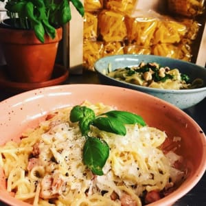 Populära pizzor och smarriga pastor med så många miljömärkta och säsongsbaserade råvaror som möjligt.