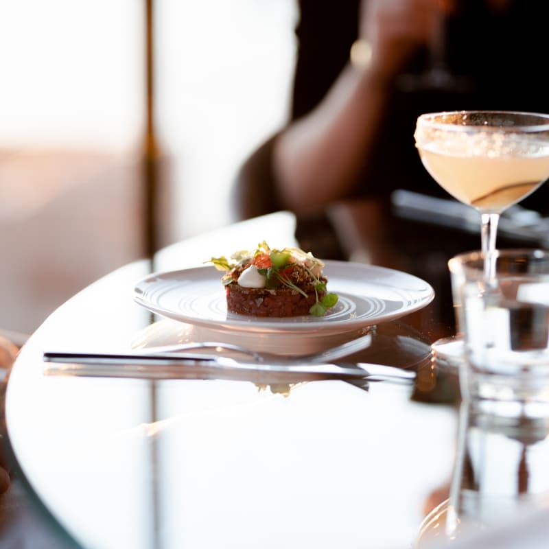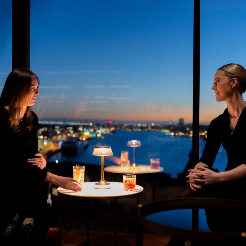 Beläget på 12:e våningen hittar du Hotel Rivertons signaturrestaurang och bar, View Skybar & Restaurant. Med läckra vyer över Göteborg och Göteborgs hamninlopp från panoramafönstren som går från golv till tak, erbjuds en atmosfär olik allt annat i Göteborg. Inredningen är chic, lyxig men ändå välkomnande med en behaglig blandning av designmöbler, exklusiva material och konstverk.
