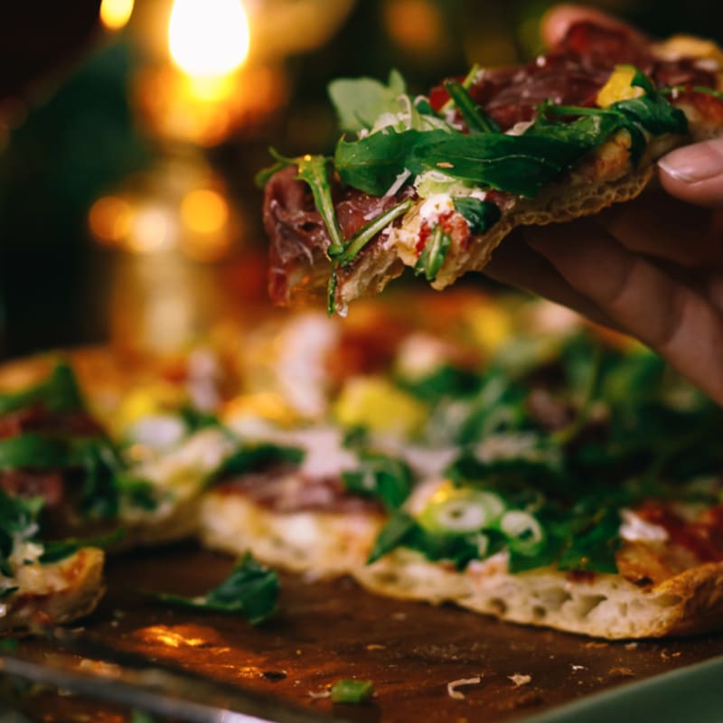 Här väljer du bland olika pizzor som är döpta efter natursköna parker och platser, såsom Botaniska trädgården, Abisko och Sicilien, eller komponerar din egen. Den som vill ha något att dricka till maten hittar allt från utvalda naturviner till läskande drinkar, lokalbryggd öl och alkoholfria drycker.